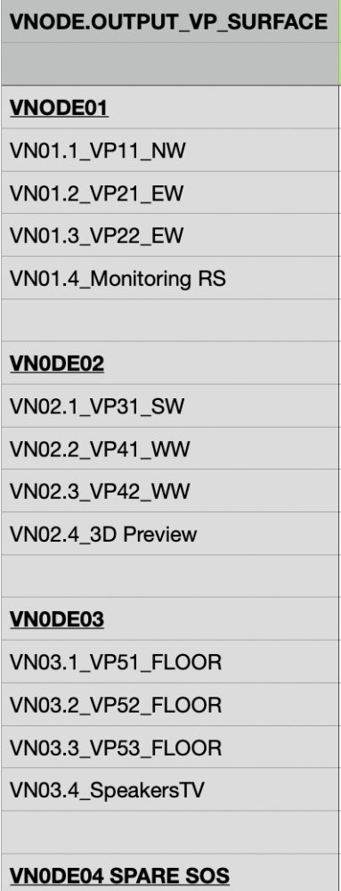 We have V-Nodes with 4 outputs graphic cards, so here is the V-Nodes Outputs distribution: