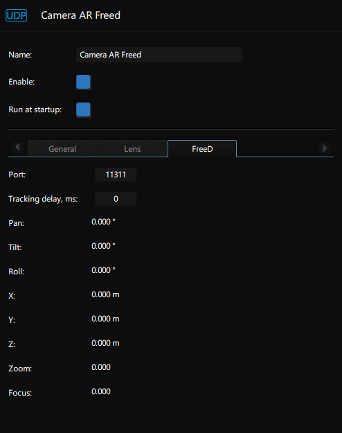 Select this device to communicate with a camera that streams tracking information using the FreeD protocol.