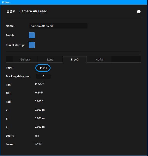 - In the FreeD tab, check that port the number is the same that the one set in the Pannasonic AW-UE150 camera (11311 by default)