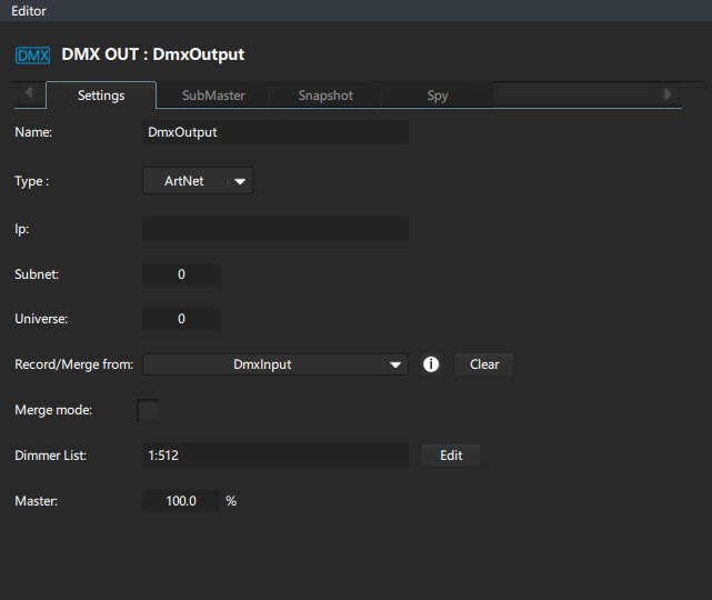 | Ip | enter an Ip adress if you want to unicast the ArtNet output, otherwise it will be broadcasted |