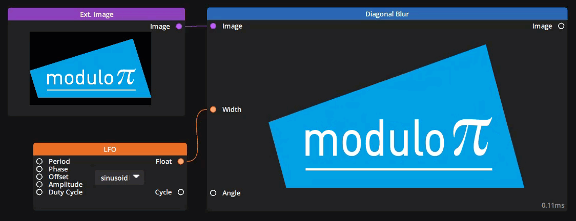 Width: Animated with an LFO between 0 and 0.5Angle: 7.5 to create an angle of 135°