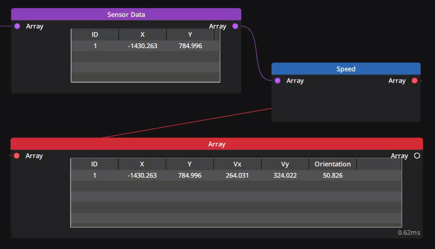 | Array | Array | Array containing dynamic data in which to calculate speed |