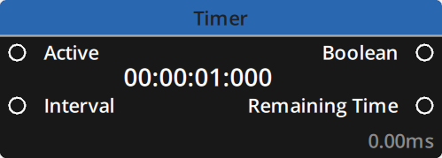 | Active | Boolean | true launches the timer, false resets the timer. |