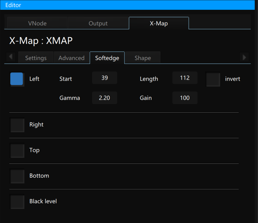 • BlackLevel: You can adjust the grayscale outside of the soft edge. It can help reduce the double video black on the soft edges.