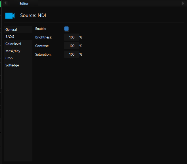 Brightness/Contrast/Saturation values are in percent mode. 100% means a neutral value.