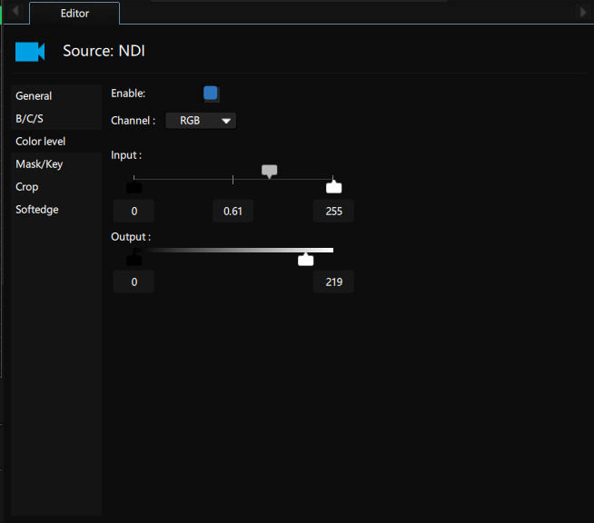 The color level allows you to adjust RGB level for global RGB and channel by channel.