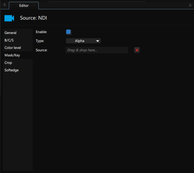 Chromakey: use the Chromakey settings to do a real time chromakey filtering on your source.