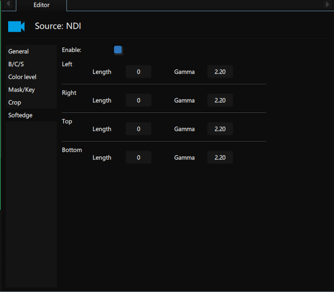 You can adjust the lenght of the softedge and the gamma value per border.
