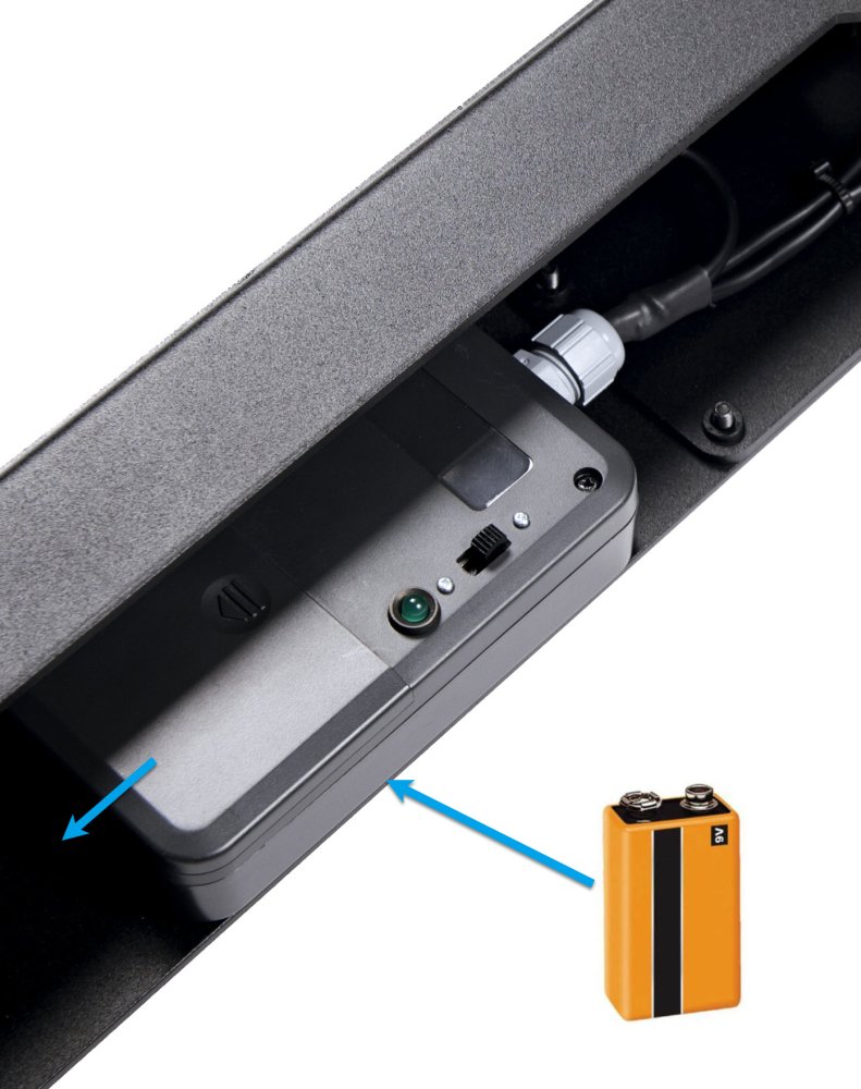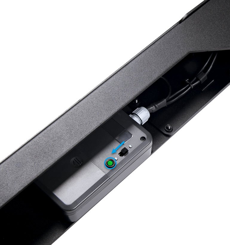 - To turn on the square, turn it over and push the switch. The indicator light comes on.