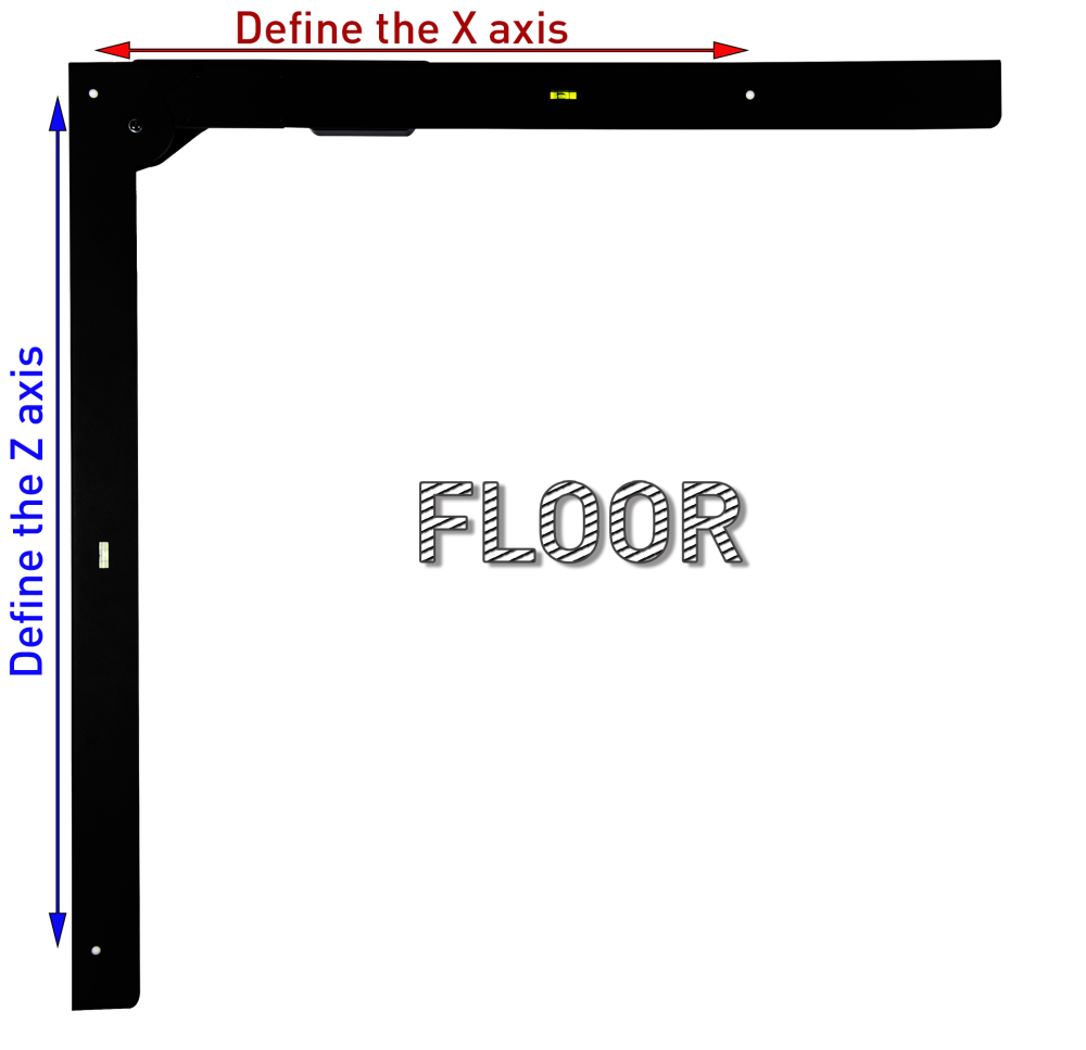 - Place the square on the floor and arrange it in such a way as to determine the orientation of your X and Z axes.