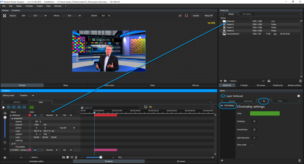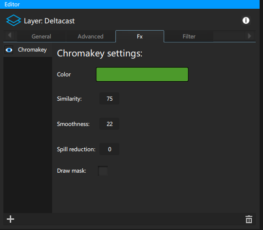 - Then, on this layer, add an Fx and select Chromakey in the list.