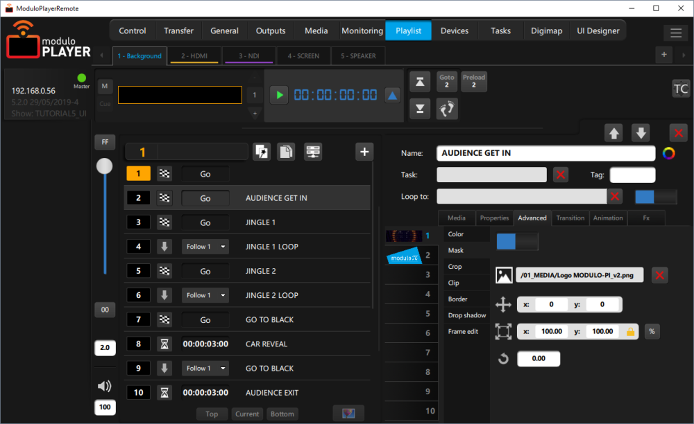 By default the mask position is relative to the media. You can change its position, its scale (in pixels or percentage) and its rotation.