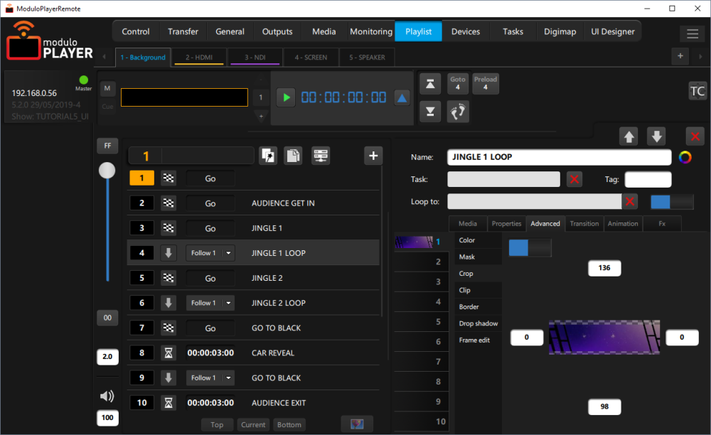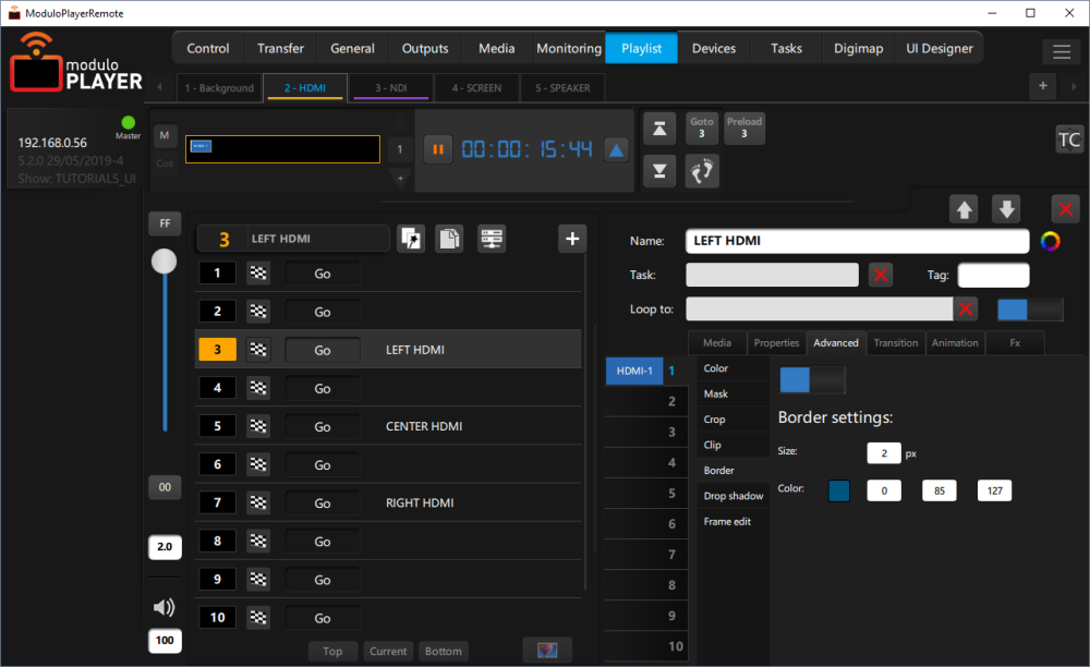 You can also configure brightness, contrast and saturation. You can animate these values with the animation tab (this wil only work if the color feature is enabled)