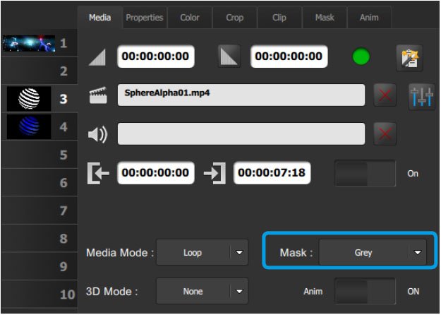 3. On Layer 3, place the media exported in Alpha mode. Set the Mask to Grey.
